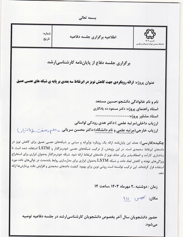 (حسین مستعد) ارائه رویکردی جهت کاهش نویز در ابر نقاط سه بعدی بر پایه ی شبکه های عصبی عمیق