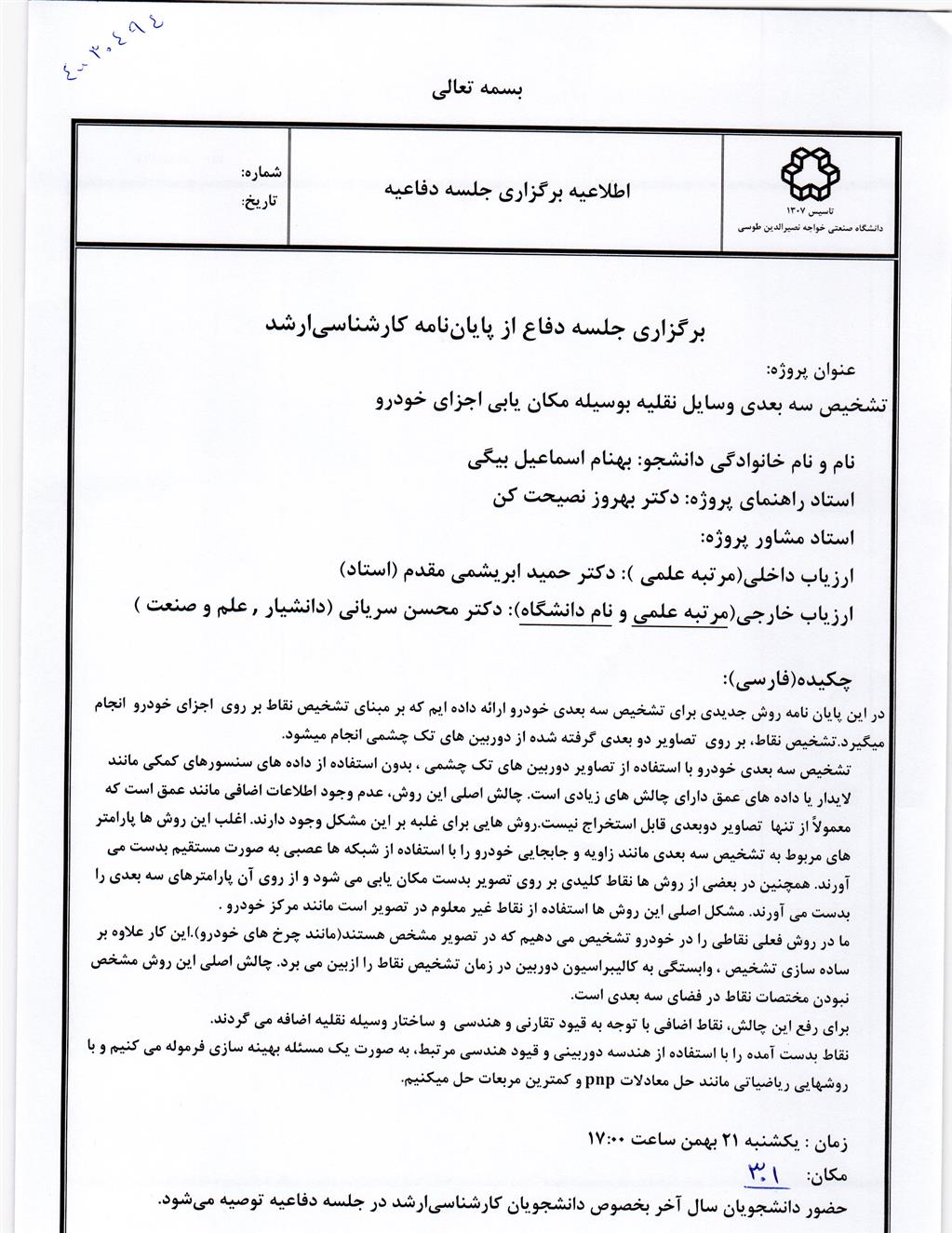(بهنام اسماعیل بیگی) تشخیص سه بعدی وسایل نقلیه بوسیله مکان یابی اجزای خودرو